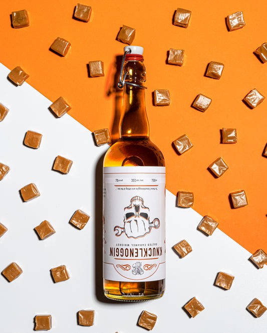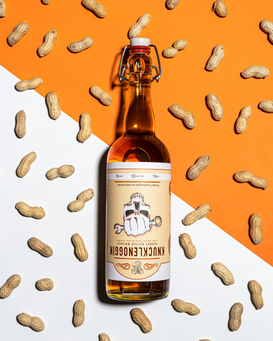 Knucklenoggin Whiskeys are made from a blend of the finest aged American whiskeys, carefully selected by our Master Blender and infused with the sweet taste of rich Salted Caramel, hot cinnimon, fresh Kettle Corn or Peanut Butter – imparting those creamy smooth notes that perfectly compliment our stunningly bold whiskey.